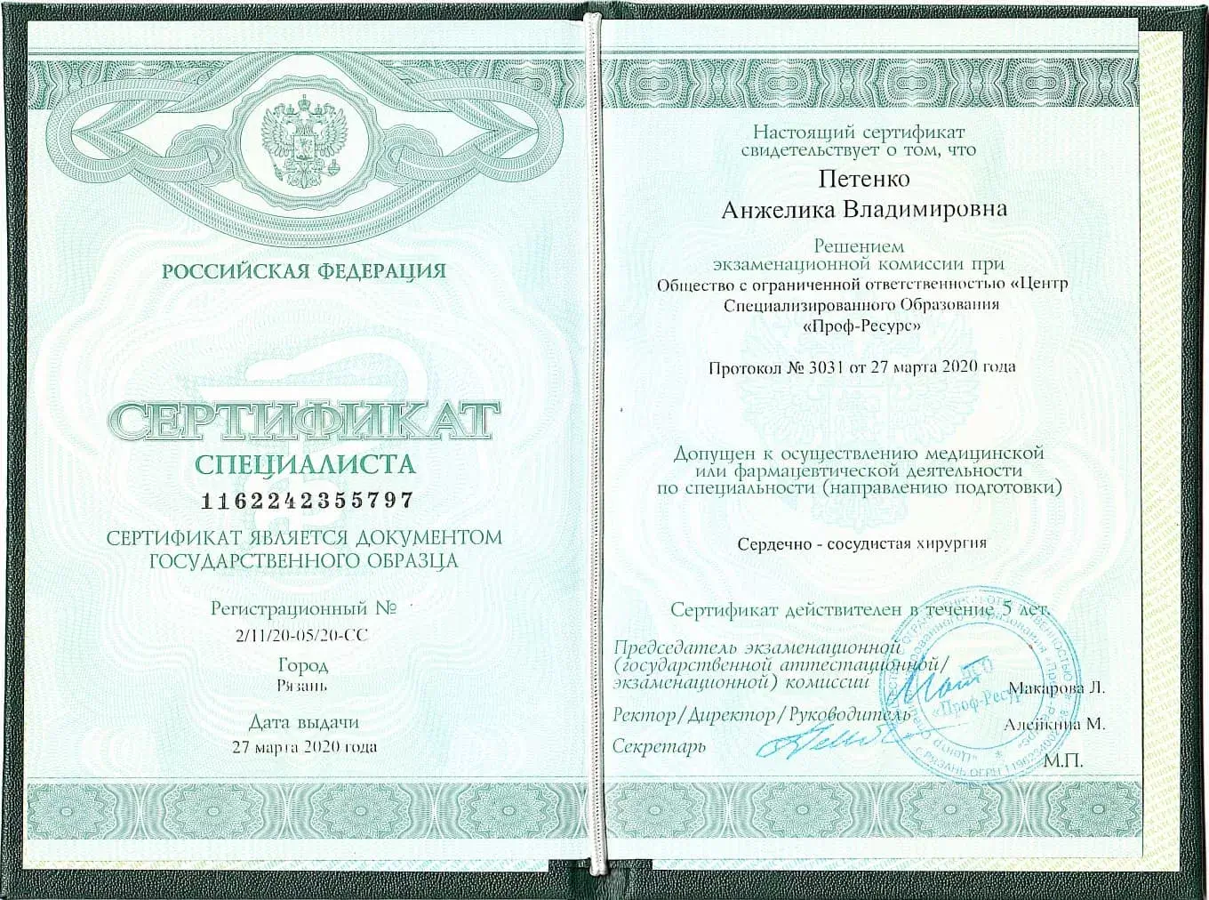 - 2020 — Центр специализированного образования "Проф-Ресурс" (направление: сердечно-сосудистая хирургия).